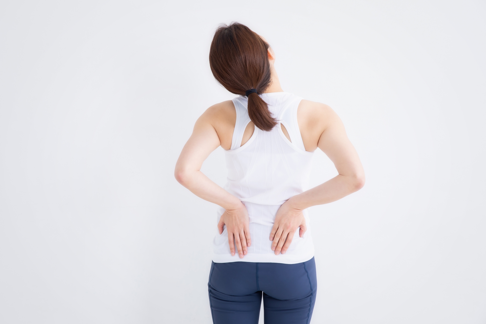 骨盤がゆがむと体の土台が不安定になり、全身にさまざまな不調が現れやすくなります。もっとも多いのは腰痛で、骨盤の傾きによって腰まわりの筋肉に負担がかかり、張りや痛みが続きやすくなります。また、骨盤のズレは背骨にも影響するため、肩こり・首こり、猫背や反り腰などの姿勢の乱れが起こりやすくなります。